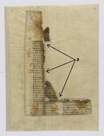 Some of the Russian fragments (like some of the New Finds in the Saint Catherine Monastery)[8] show evidences of folded lines that may suggest they were reused as cover material (picture 10).