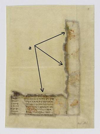 | 10: Repaired fragment, (Greek 259-2r, Greek 259-3r) in St Petersburg, State Public Library |