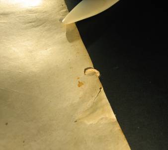 | 26: Remains of sewing thread from the unbound Codex